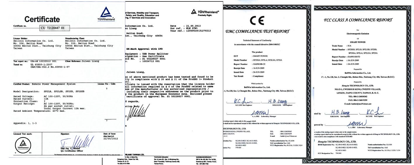 倍穎的PDU產品有通過cTUVus(UL60950), FCC, CE的安規驗證,並符合ROHS 的要求。 |